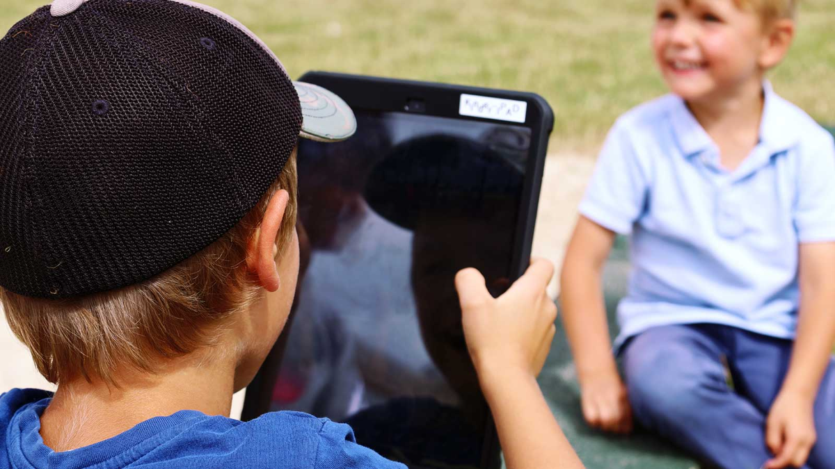 Hier gibt es sowohl zu Hause als auch in der Kita tolle Möglichkeiten. Statt ihren Kindern einfach nur Spiele-Apps zur Beschäftigung zu geben, können Eltern eine Mal-App installieren, in der Bilderbuch-App auch mal die Aufnahmefunktion nutzen oder ihre Kinder z. B. mit der Handykamera Fotorätsel aufnehmen lassen: Die Kinder knipsen auf Spaziergängen oder in der Wohnung kleine Details, und die Eltern müssen raten, was auf dem Bild zu sehen ist. Oder der andere Elternteil oder Freunde werden per Messenger einbezogen: „Mal gucken, ob Papa errät, wo wir gerade sind!“. Mit den Eltern oder in der Kita können Kinder mit der Kamera auf Farben-, Formen-, Buchstaben- oder Zahlensuche gehen und z. B. eine Schnitzeljagd mit Fotorätseln oder ein Foto-Memory erstellen.